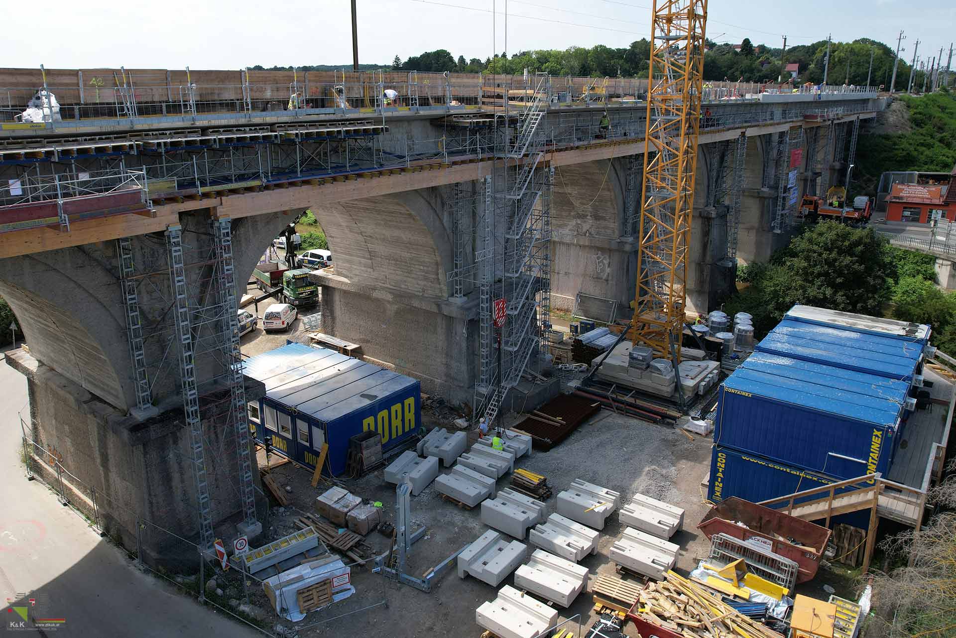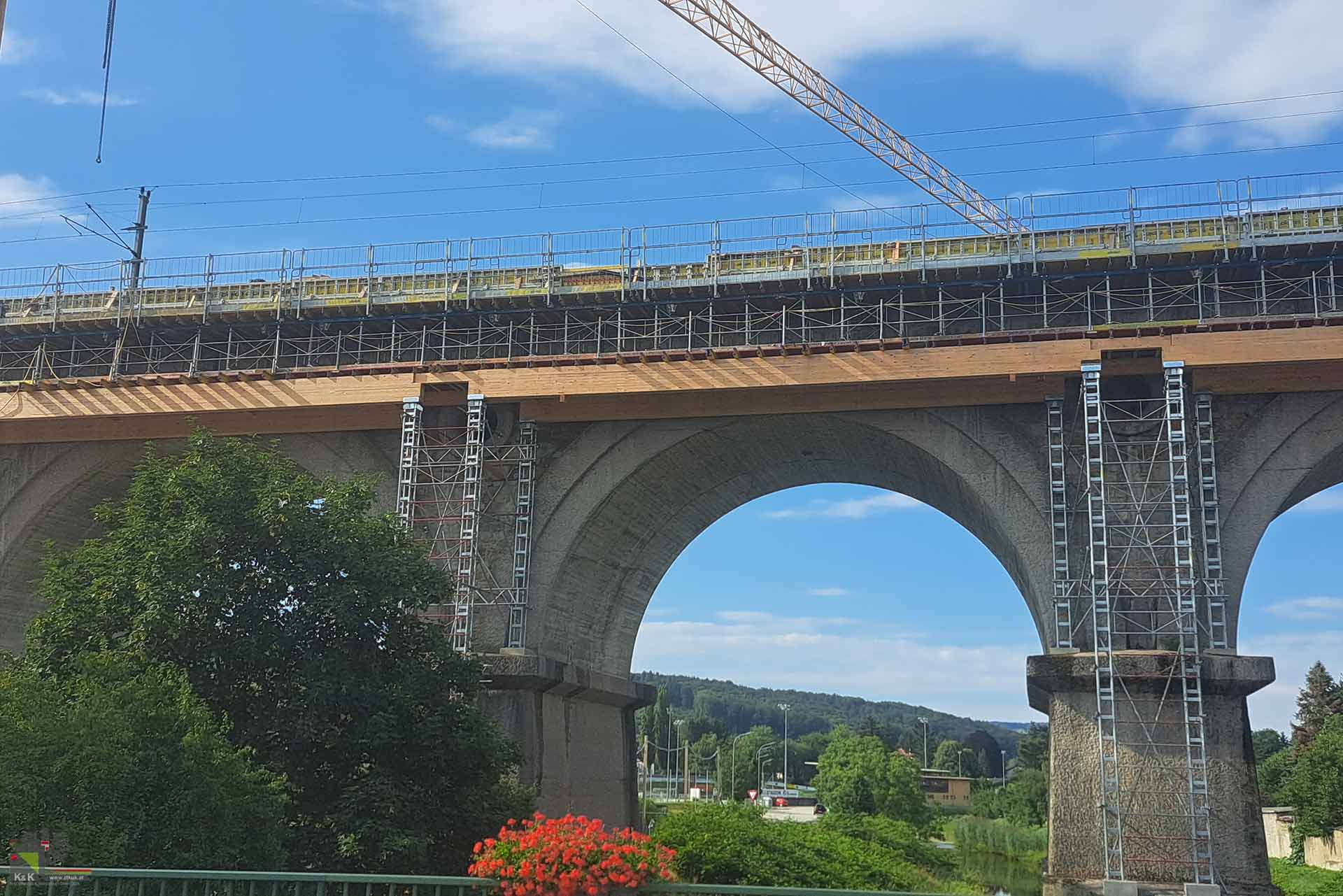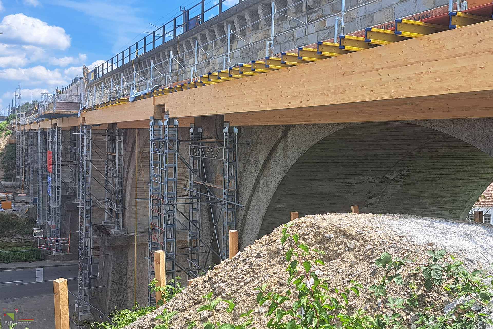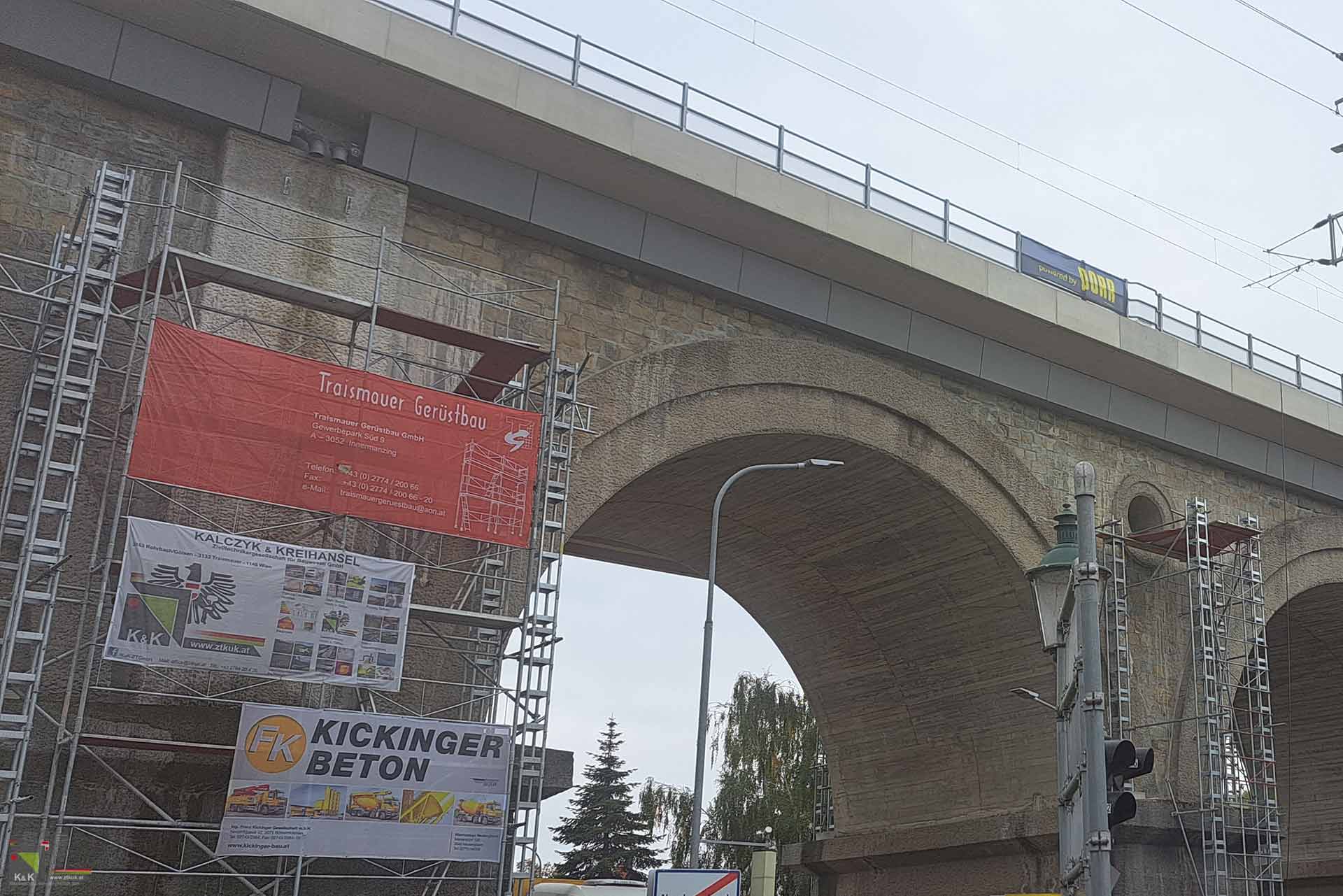 Bei der Sanierung der Fahrbahnplatte des bestehenden Eisenbahn-Viadukts in Neulengbach übernahmen wir die statische Berechnung der kompletten Arbeitsplattform.