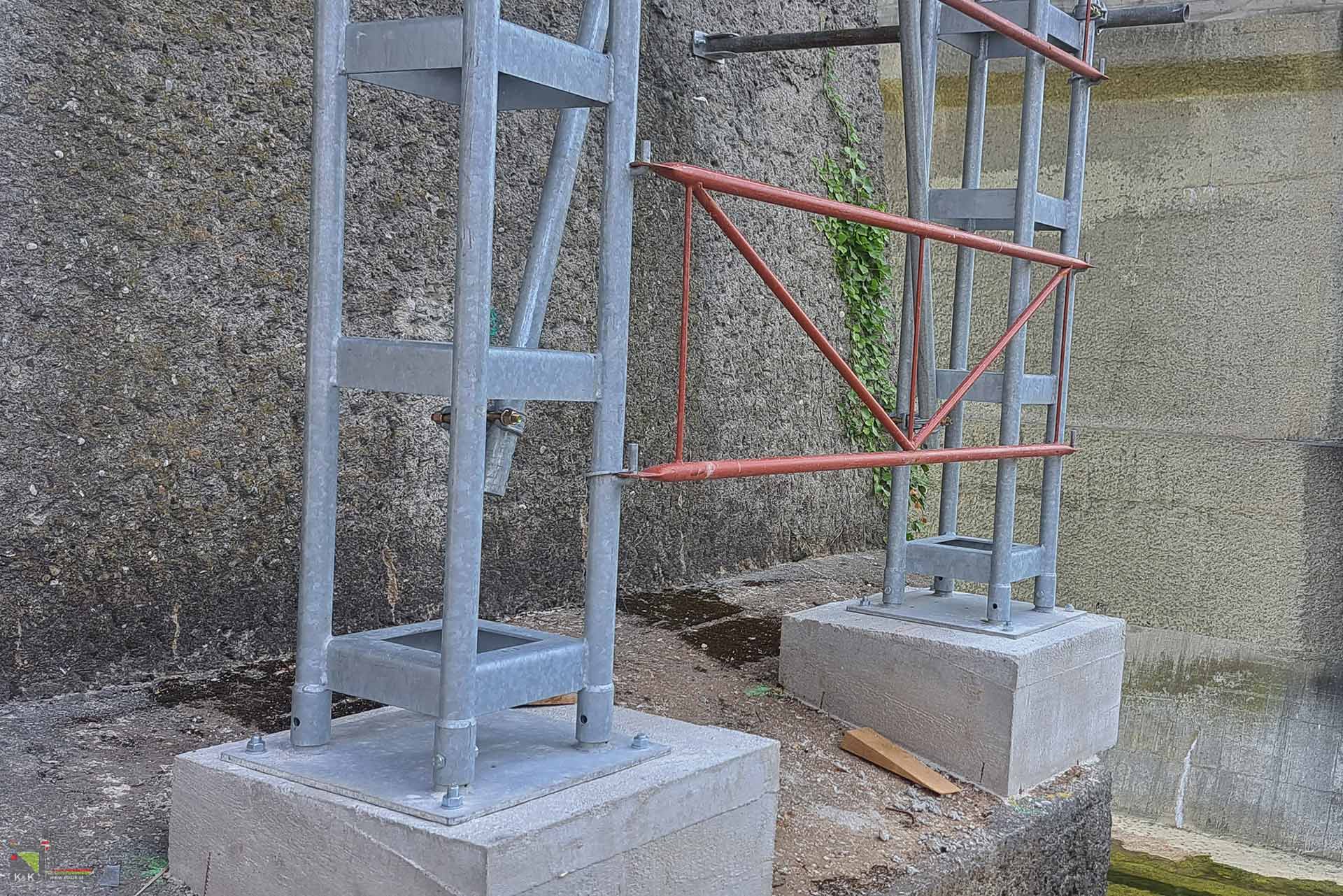 Dies beinhaltete die Stahlunterkonstruktion – bestehend aus 13m hohen Rahmenstützen – des Arbeitsplateaus, deren Stahlbeton-Fundamente und das Arbeitsplateau aus Holz selbst. Die Plattform erfüllte zwei zentrale Aufgaben: Sie sicherte den Zugang für das Baustellenpersonal und trug die temporären Lasten des Frischbetons für die Fahrbahnerweiterung sowie der Schalungsrüstung während des gesamten Bauzustandes ab.